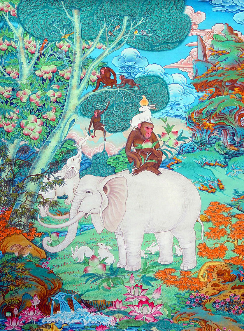 158宗咯巴五幅一套 གླང་ཆེན་ལ་གཟིགས་པའི་ཙོང་ཁ་པ་། |
